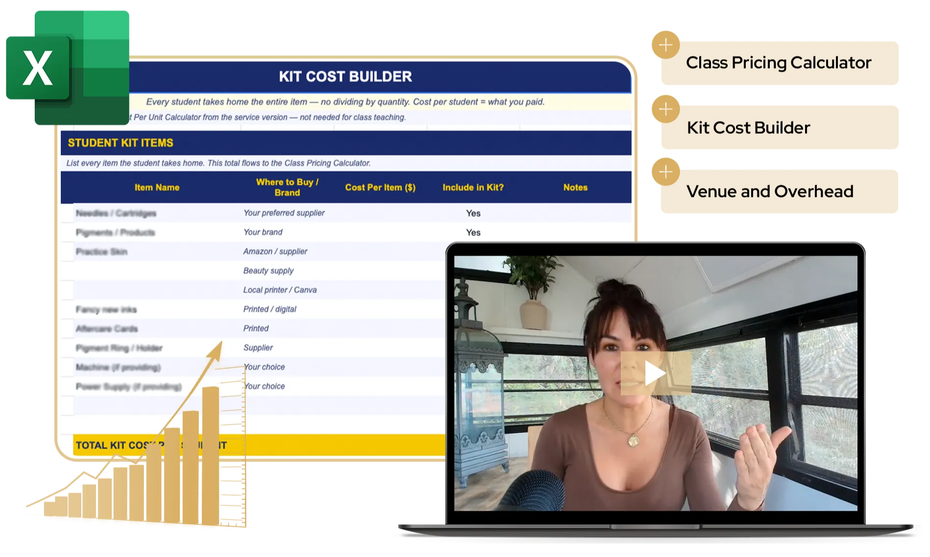 Input your costs, your desired pay, and your market. Get the exact price you should be charging β no more guessing, no more undercharging, no more leaving money on the table. (a $97 value) β because one underpriced class costs you more than this entire course.